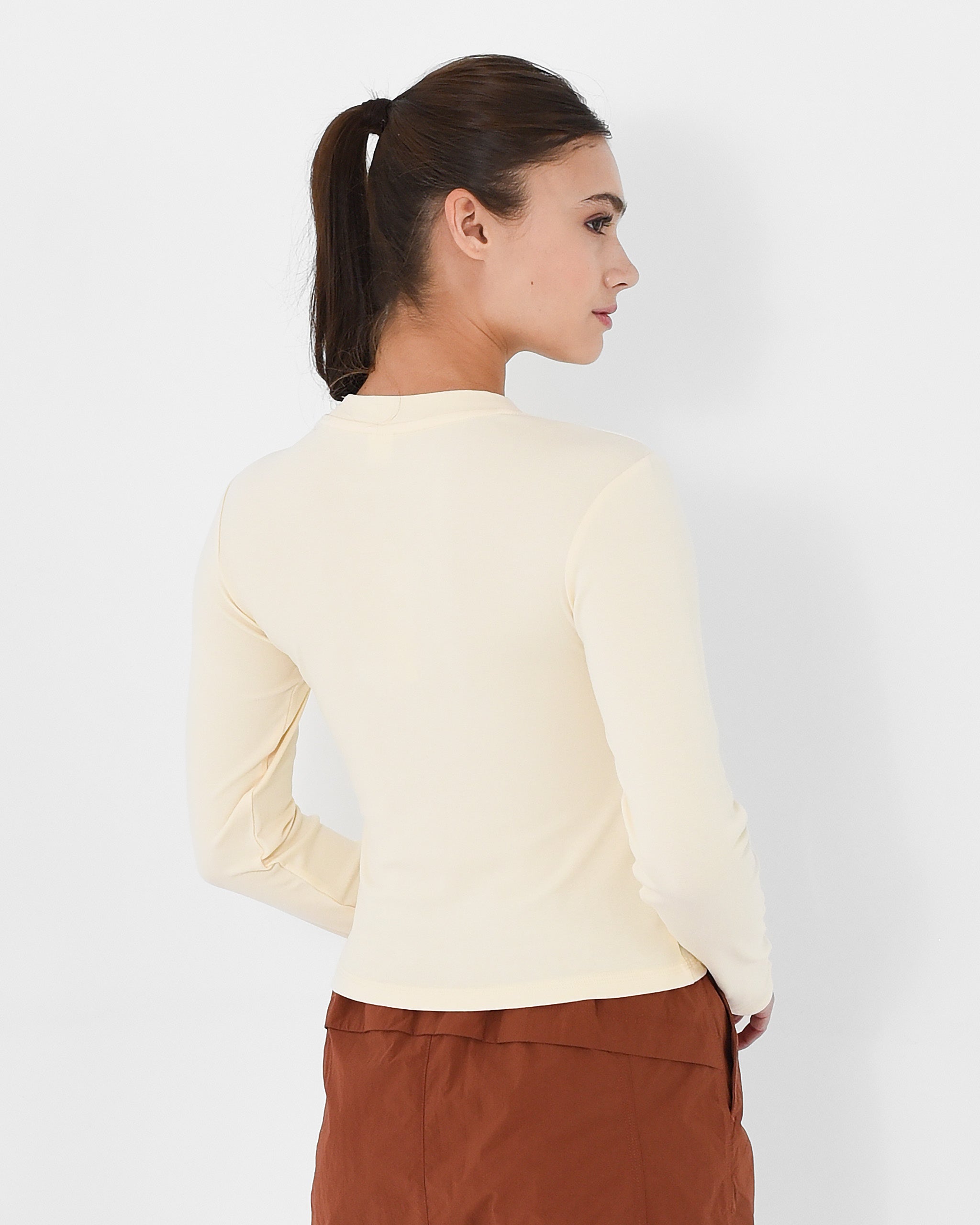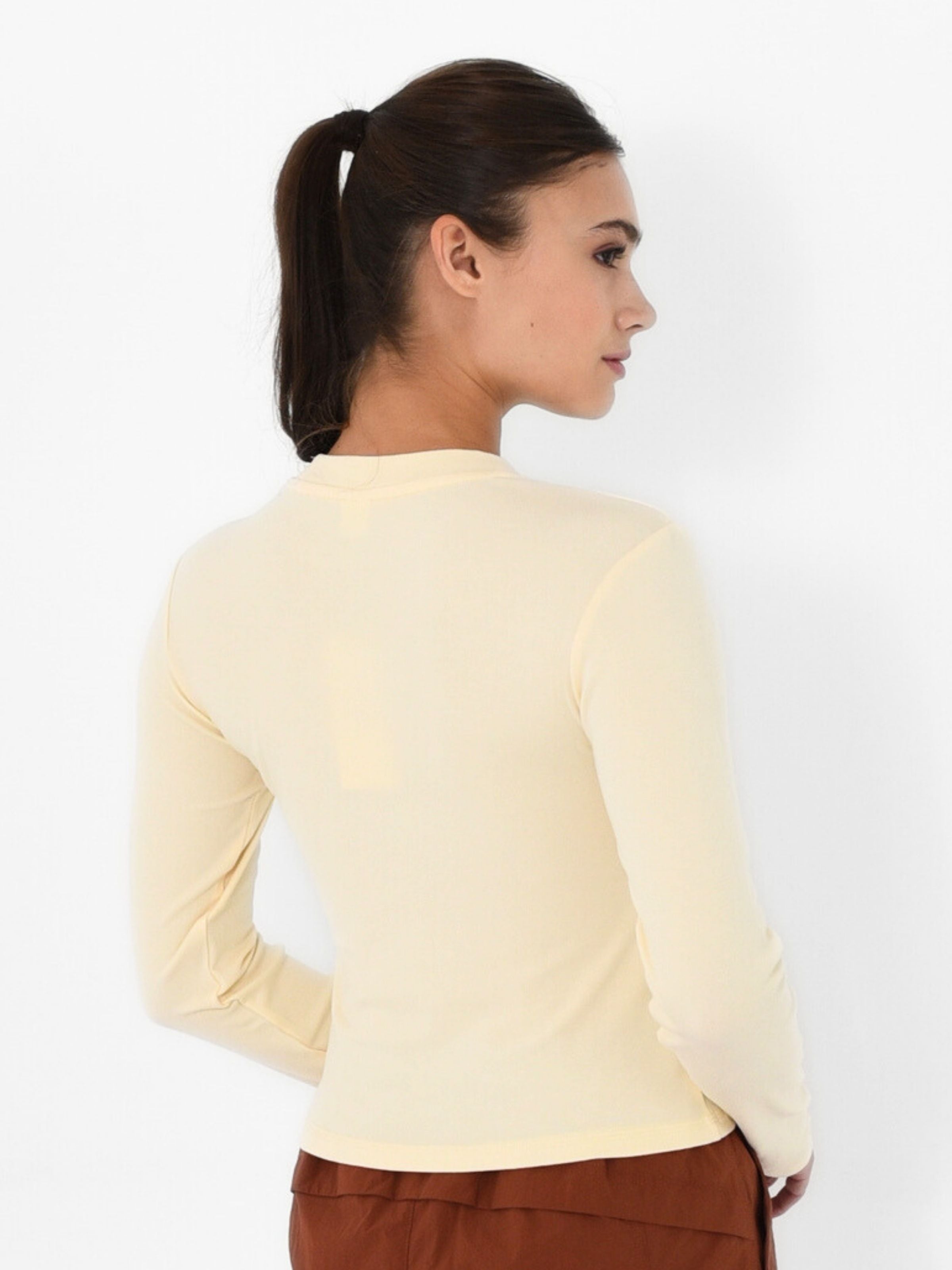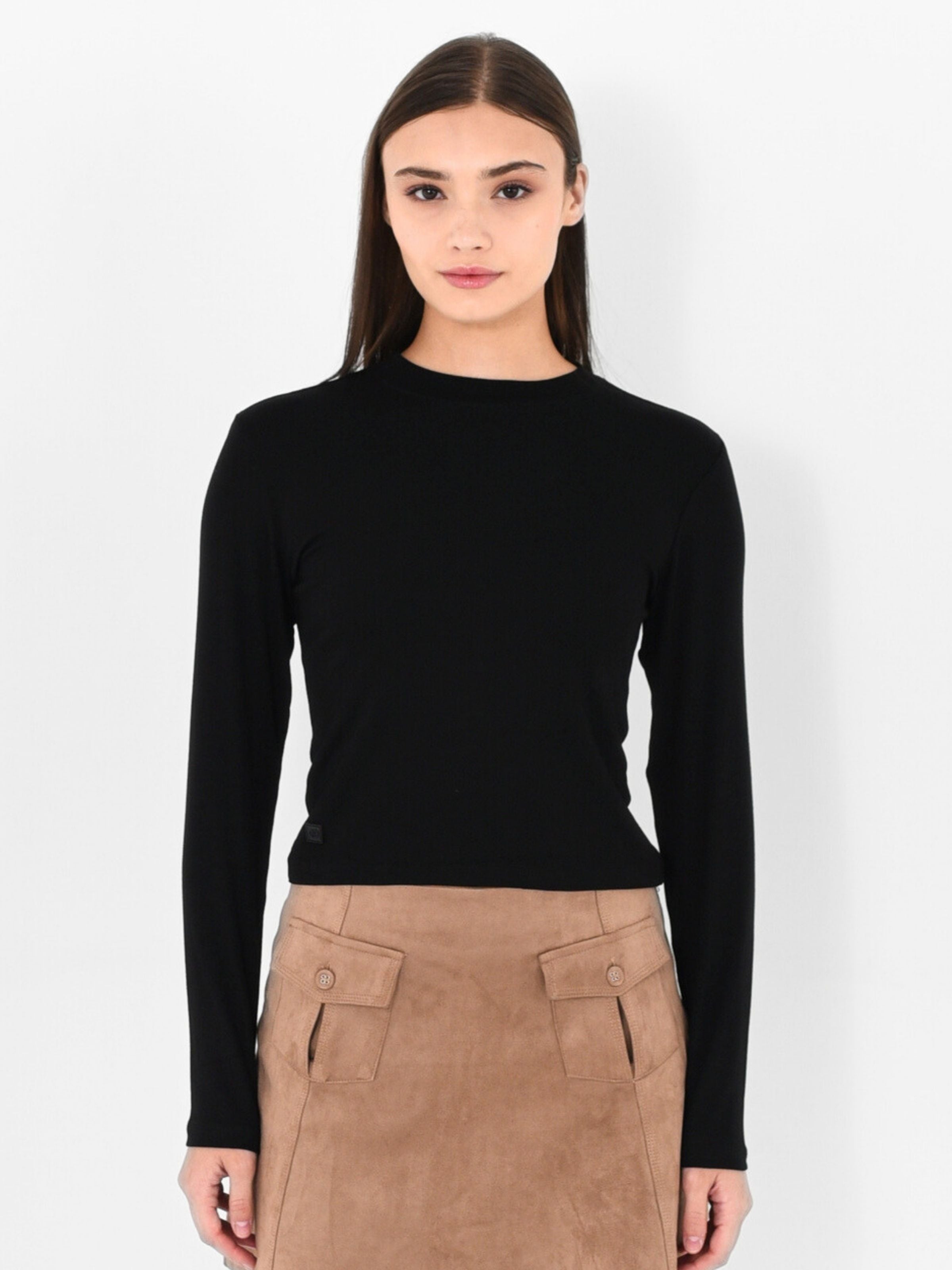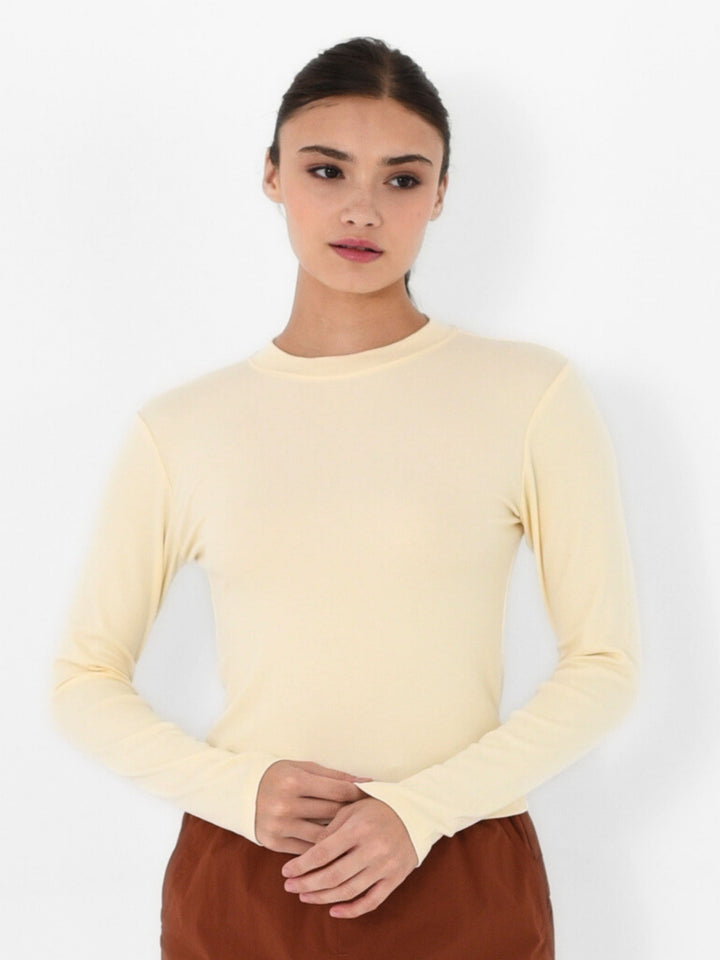 Elevate your essentials with this refined knitted top, designed with a sophisticated high neckline and streamlined silhouette. The long sleeves and slim fit create a polished, versatile piece that transitions seamlessly from office to evening wear. Crafted from quality knit fabric, it offers comfortable structure while maintaining an elegant drape. Perfect for layering or wearing solo, this wardrobe staple delivers timeless style with contemporary sophistication.