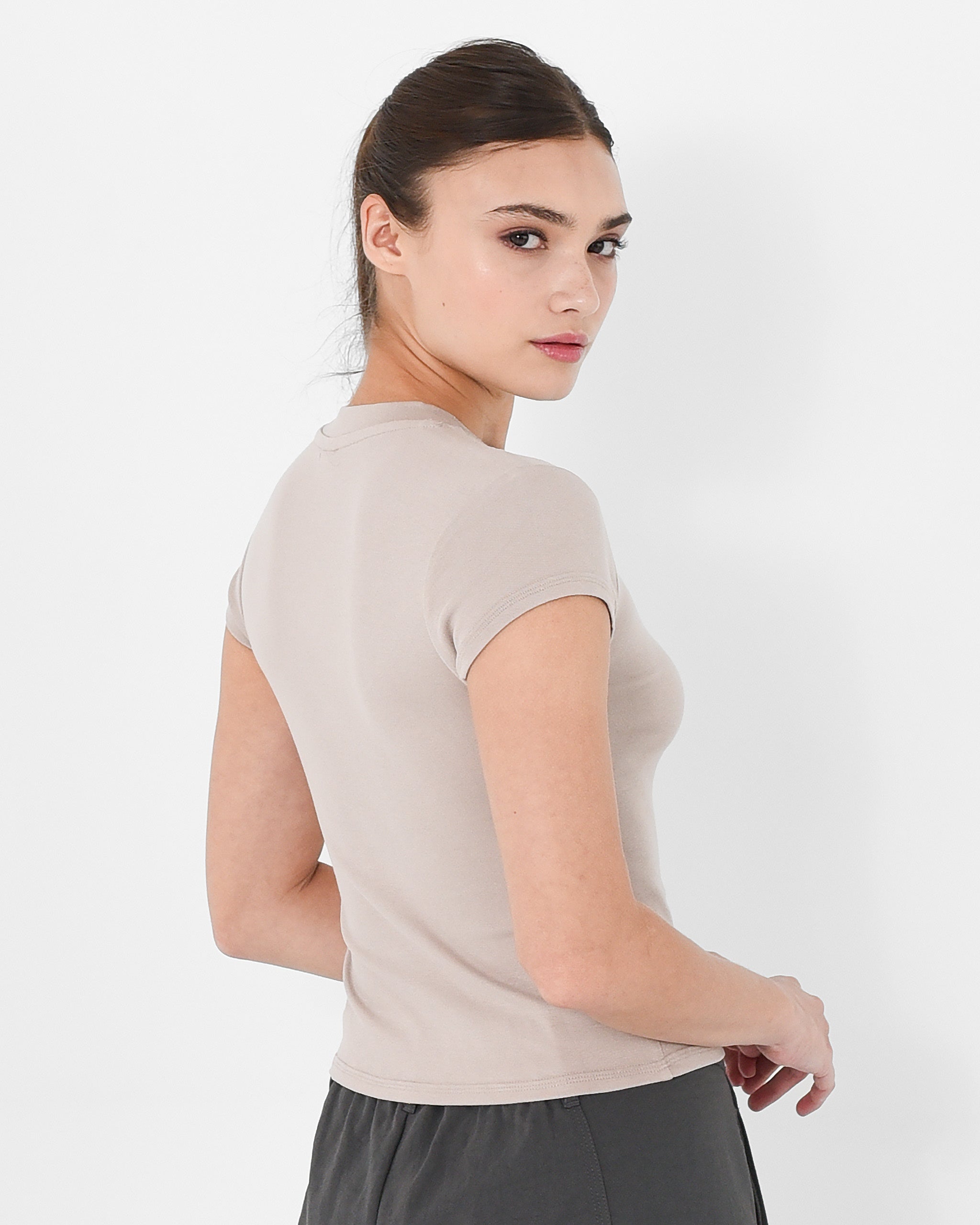 Crafted from quality knitted fabric, this slim fit short sleeve tee combines structured comfort with refined aesthetics. The knit construction provides natural breathability and gentle stretch, adapting to your movements while maintaining its shape. Its tailored fit works seamlessly as a versatile base layer or confident standalone piece for any occasion.
