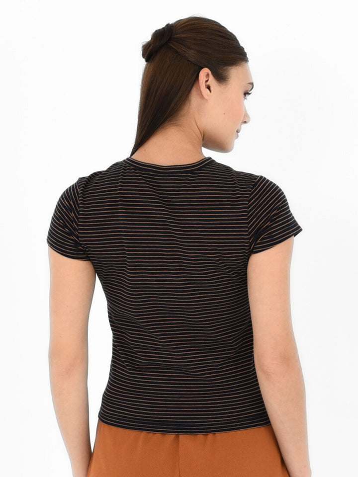 This striped short sleeve tee combines breathability with style, designed to keep you comfortable while subtly enhancing your silhouette. Its lightweight fabric promotes airflow, making it perfect for warm days, while the clean striped pattern adds a refined touch to everyday casual wear.