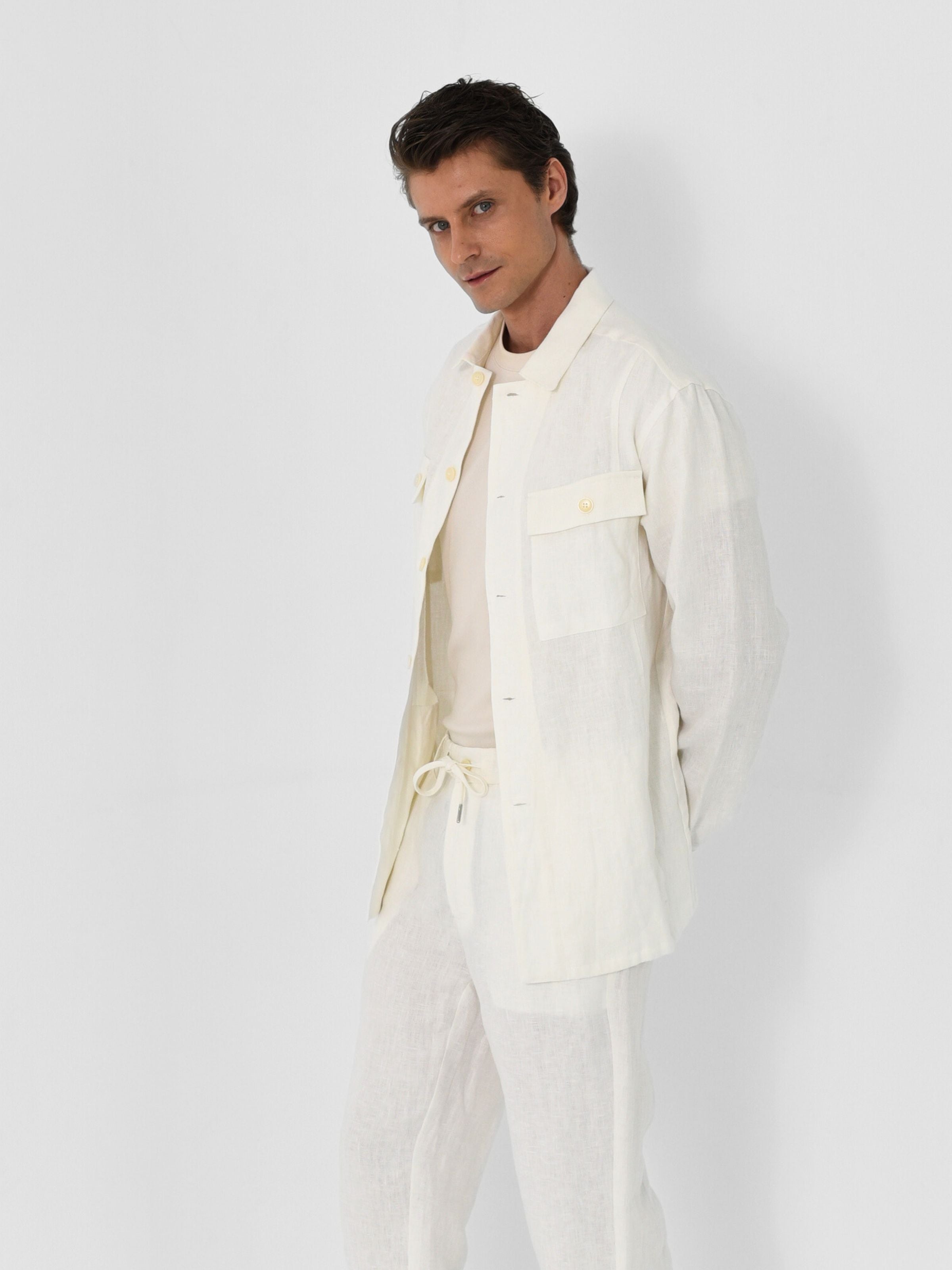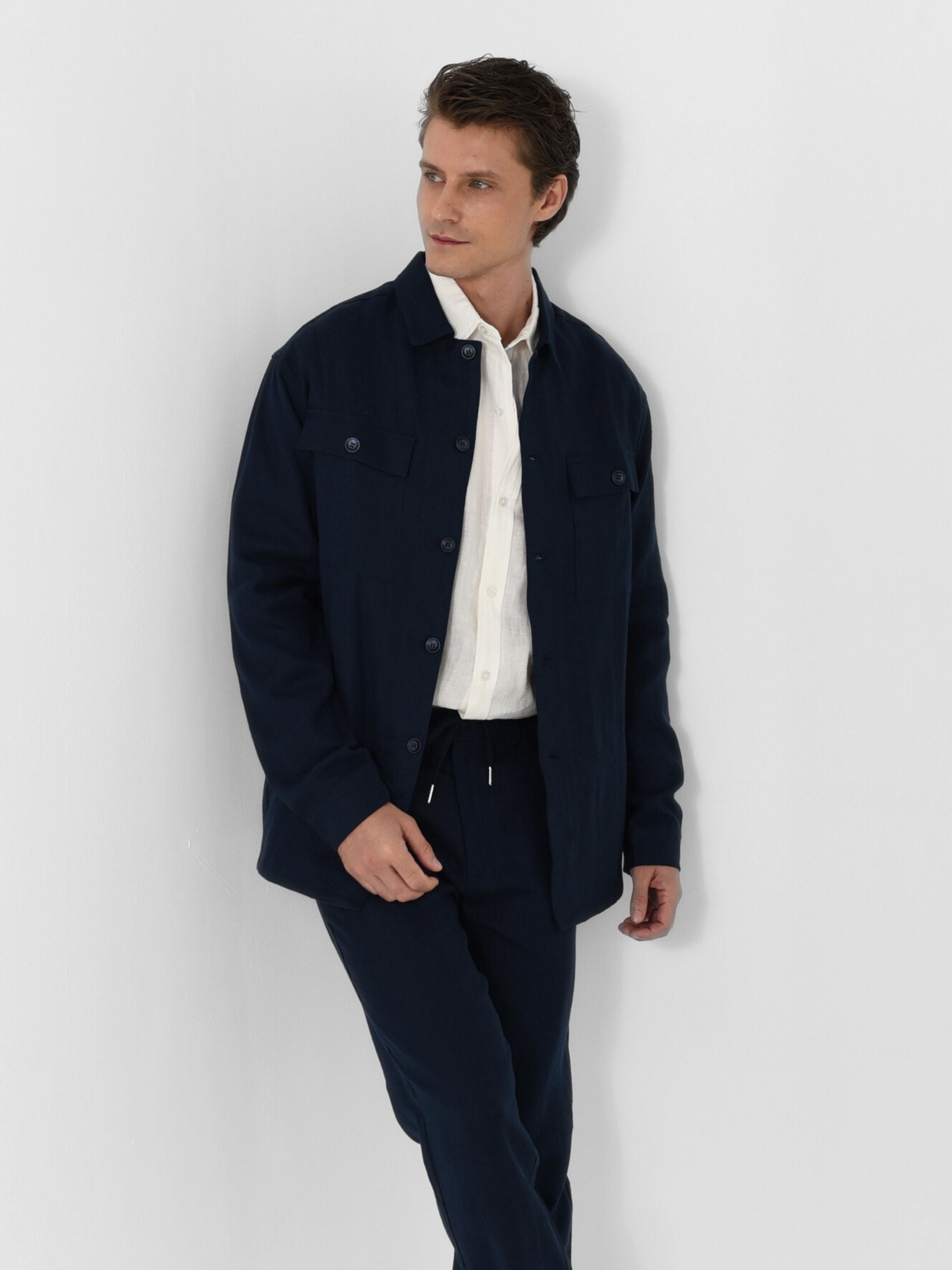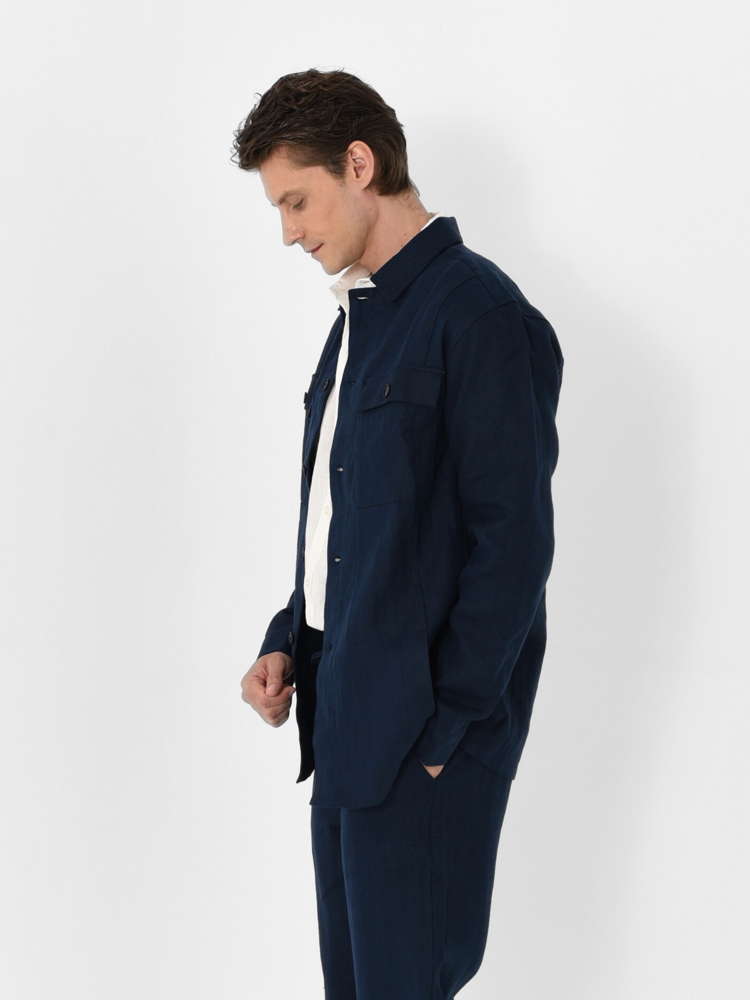Tailored to features a button-down front and dual flap pockets for a utilitarian touch. Lightweight yet polished - it's the ideal warm-weather layer for smart, effortless style.