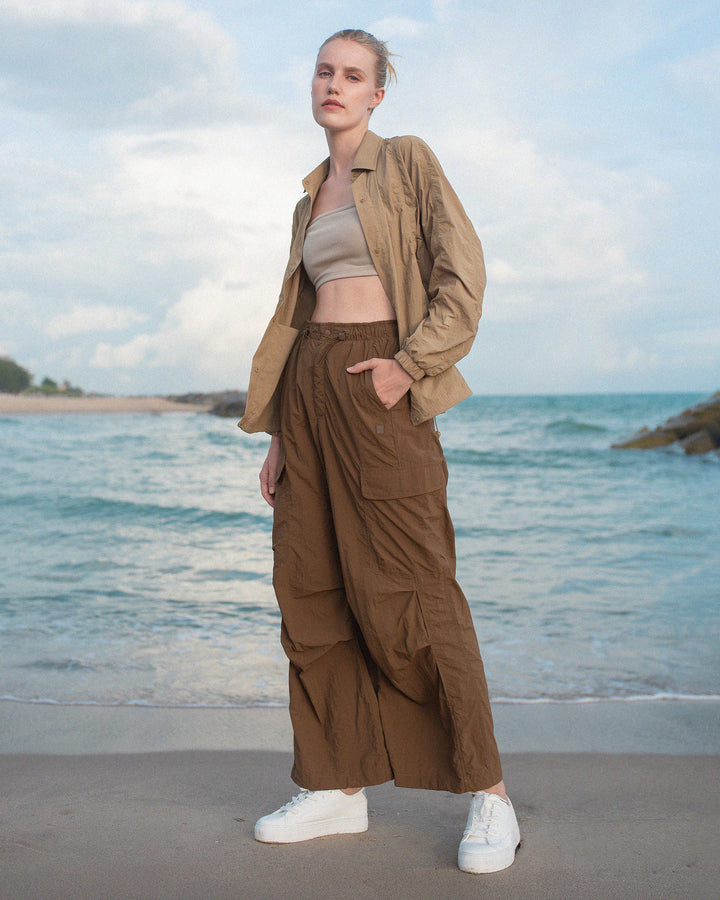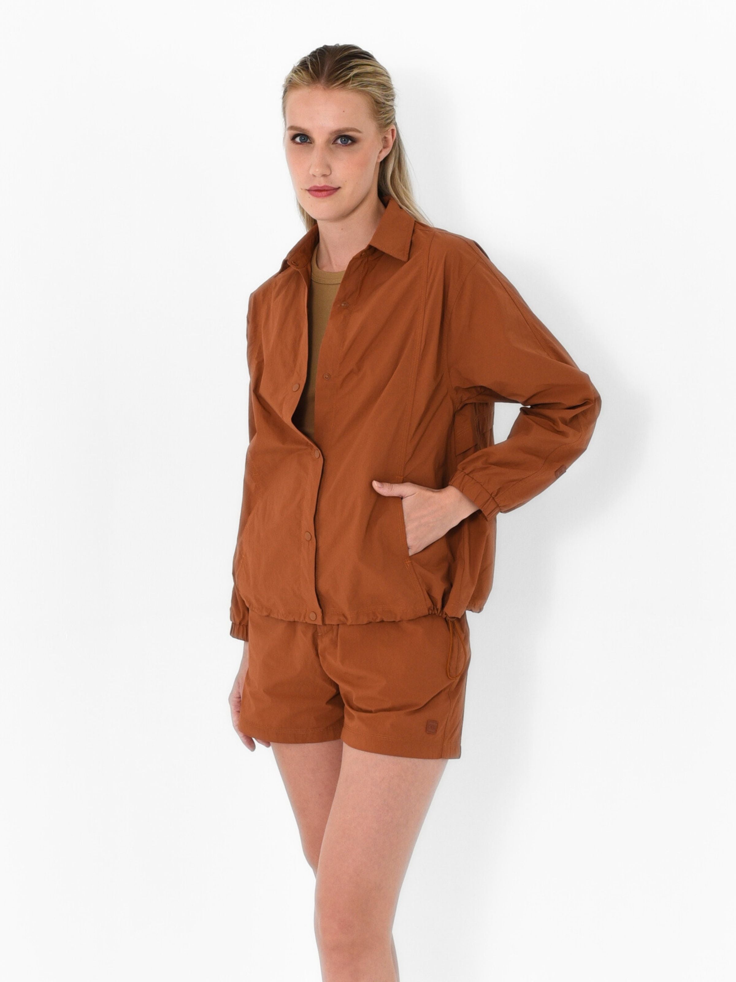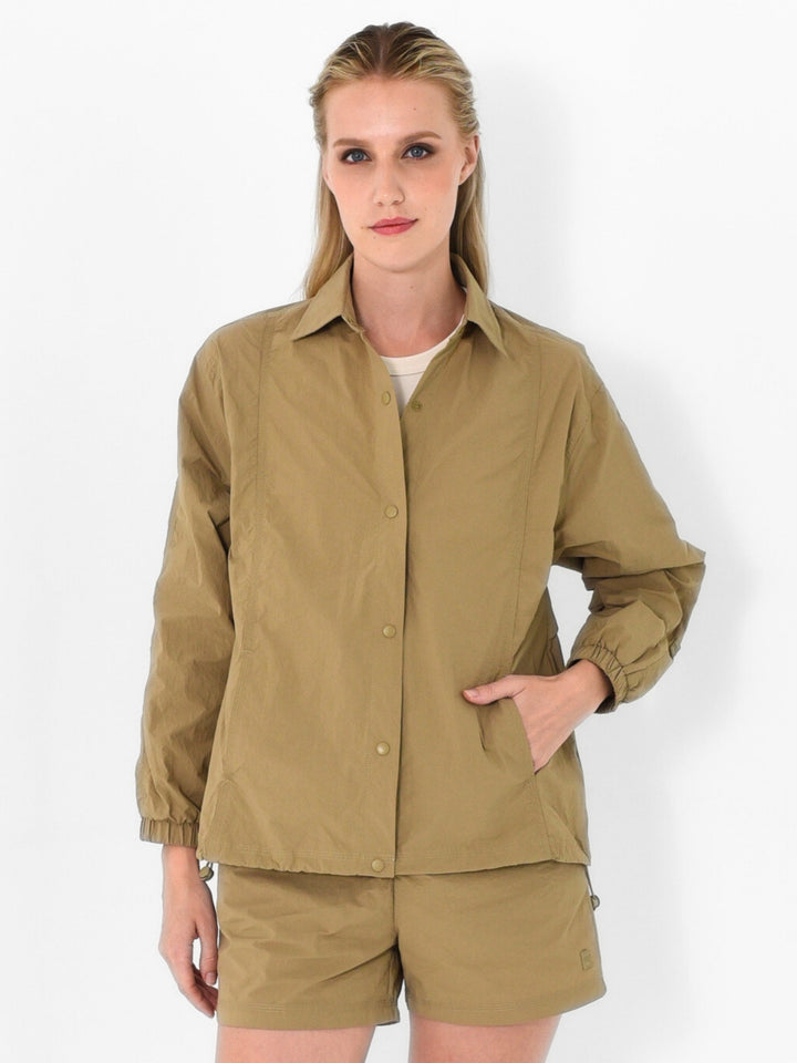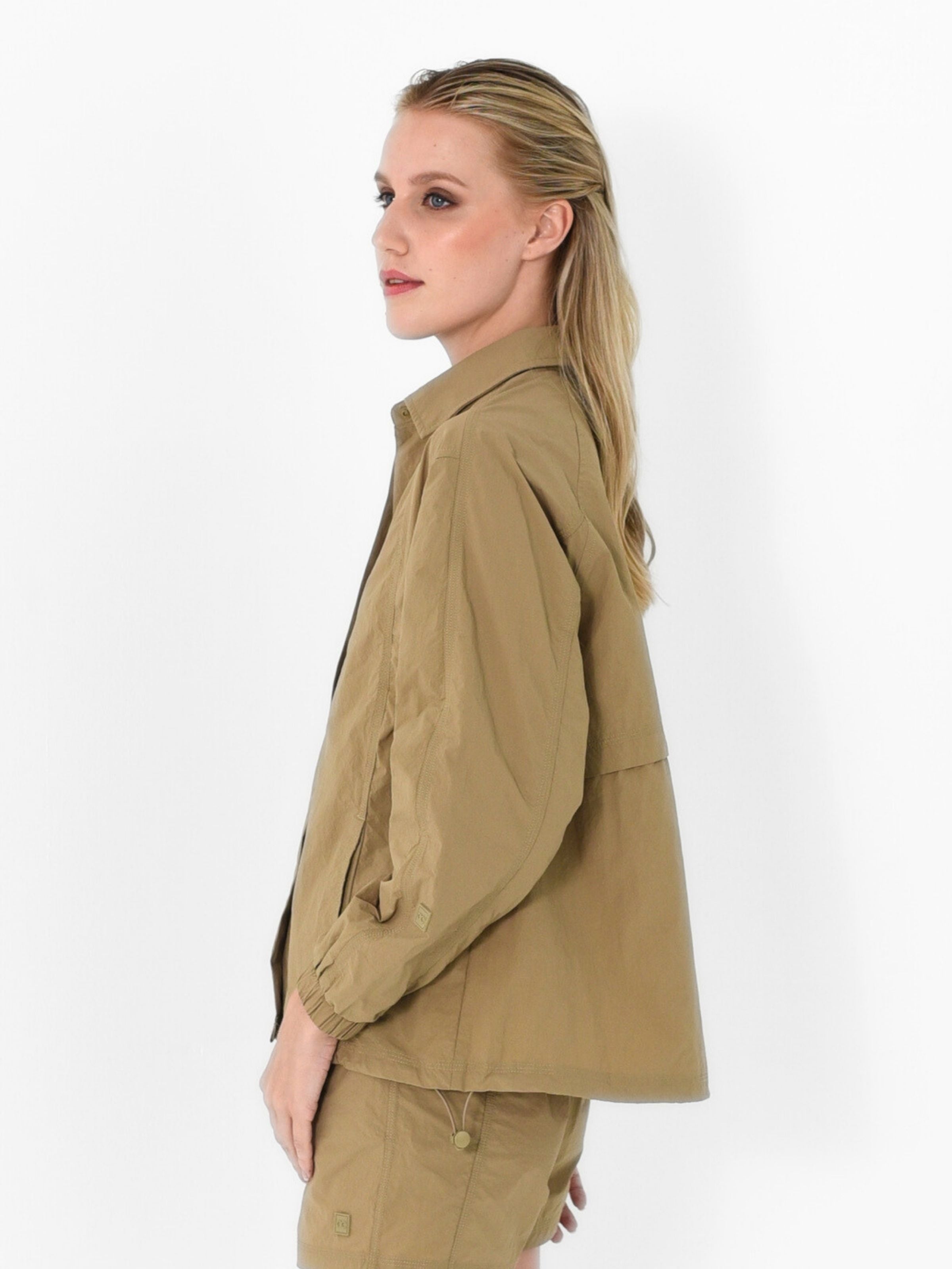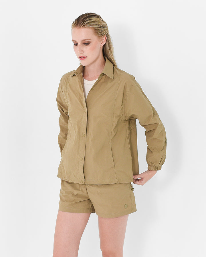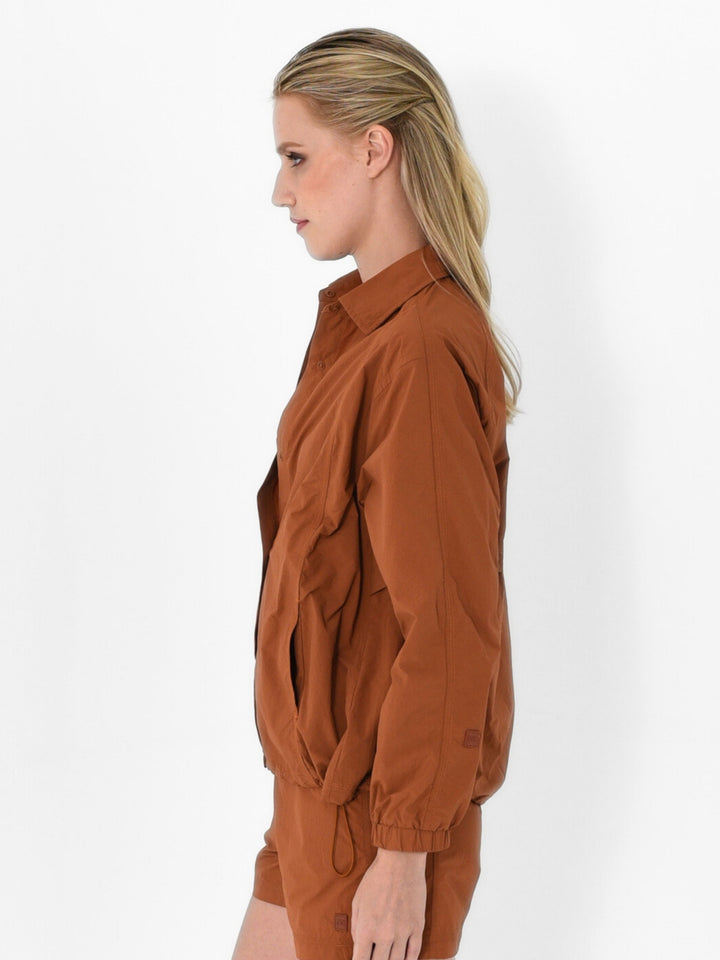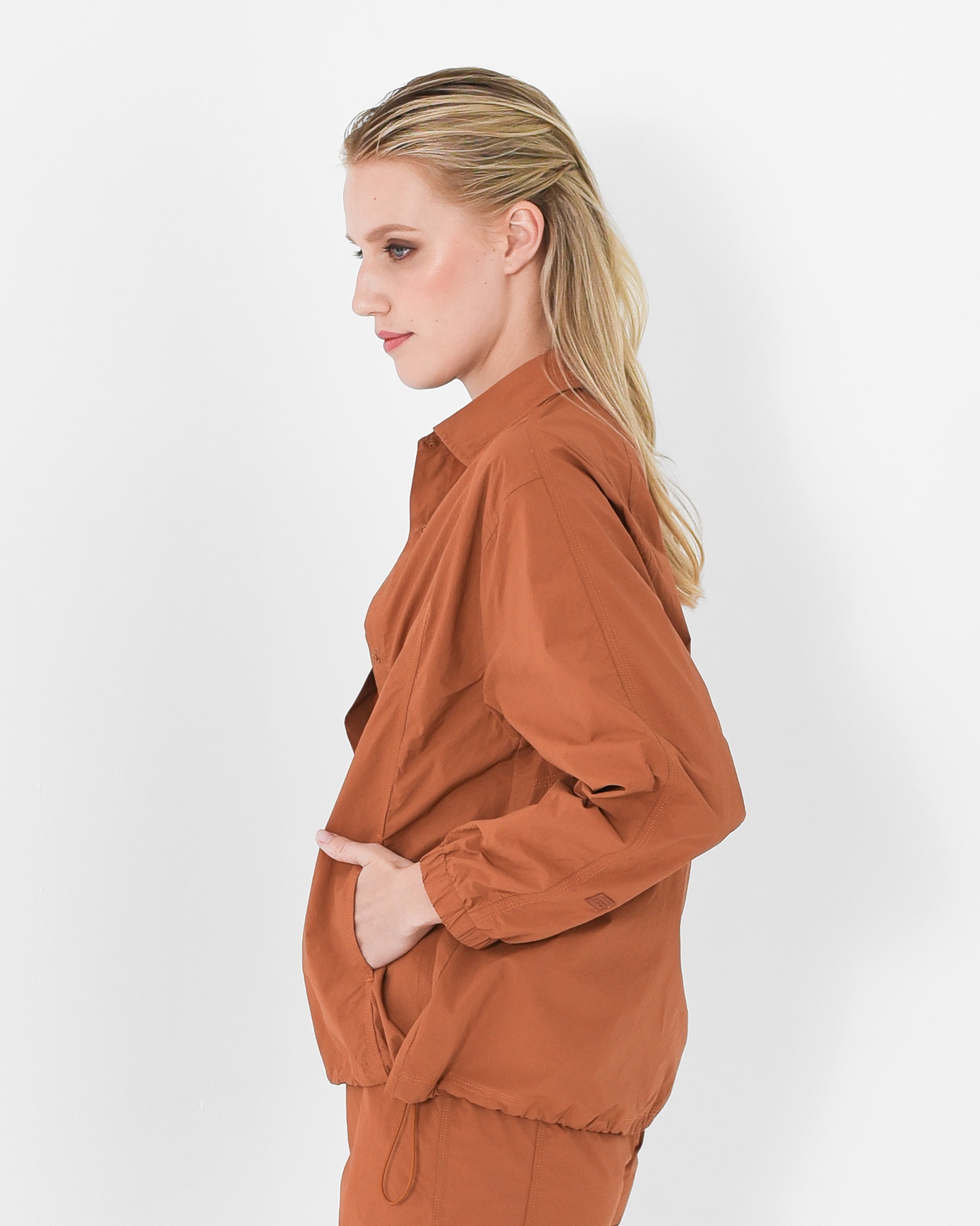Designed to move with ease, featuring snap-button closure and an adjustable drawstring hem for a personalized silhouette. Perfect for layering or wearing solo.